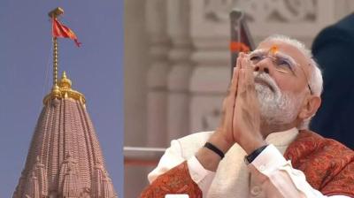 अयोध्या में ऐतिहासिक क्षण पूरा हुआ। पीएम मोदी और मोहन भागवत ने राम मंदिर के 161 फीट शिखर पर धर्मध्वजा फहराई और पहली बार राम दरबार में पूजा की। पीएम...