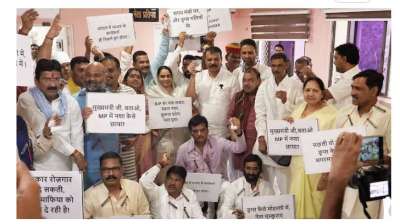 उमंग सिंघार बोले- सरकार आदिवासियों को परेशान कर रही, कांग्रेस विधायकों ने फूल-पत्ती लेकर विधानसभा में किया प्रदर्शन