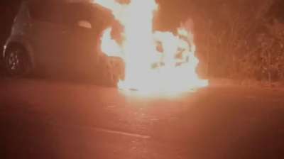 हाईवे पर चलती कार बनी आग का गोला
