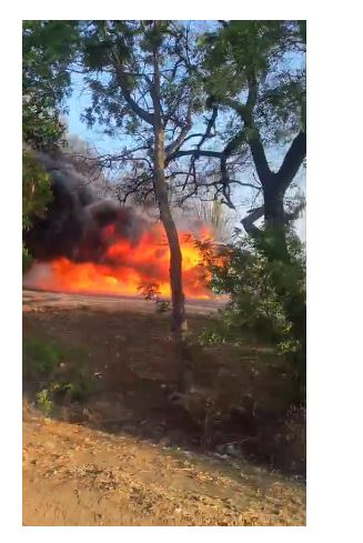 देवास–सोनकच्छ हाईवे पर हादसा, बस आग की चपेट में