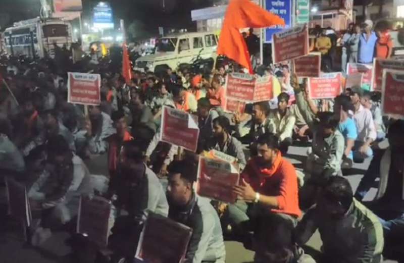 अराजक तत्वों ने भगवान की प्रतिमा पर तोड़ी शराब की बोतल, बजरंग दल ने किया चक्काजाम