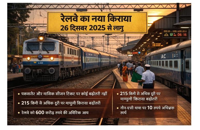 संशोधित किराया केवल 26 दिसंबर 2025 से बुक किए गए टिकटों पर लागू होगा, पहले से बुक टिकटों पर भविष्य की यात्रा के लिए भी कोई प्रभाव नहीं