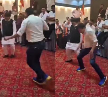 इंदौर। मध्य प्रदेश के इंदौर में बीजेपी के प्रशिक्षण शिविर के बाद अनोखा नजारा देखने को मिला. भारतीय जनता पार्टी के नेता फिल्मी गानों पर थिकरते नजर आए. वहीं पार्षद मनीष शर्मा ने ऐसा गजब का डांस किया कि चर्चा का विषय बने हुए हैं. उनका डांस सोशल मीडिया पर वायरल हो रहा है. कांग्रेस ने इस मामले पर निशाना साधा है।
