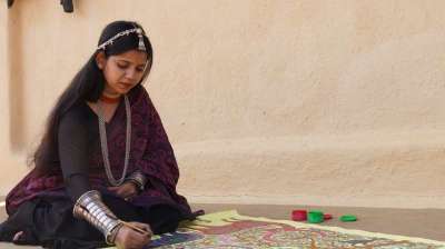 57वीं शलाका जनजातीय चित्र प्रदर्शनी जनजातीय संग्रहालय में भील समुदाय की युवा चित्रकार रीता भूरिया के चित्रों की प्रदर्शनी