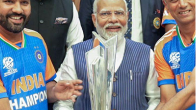 रोहित शर्मा और राहुल द्रविड़ ने पीएम मोदी को सौंपी ट्रॉफी